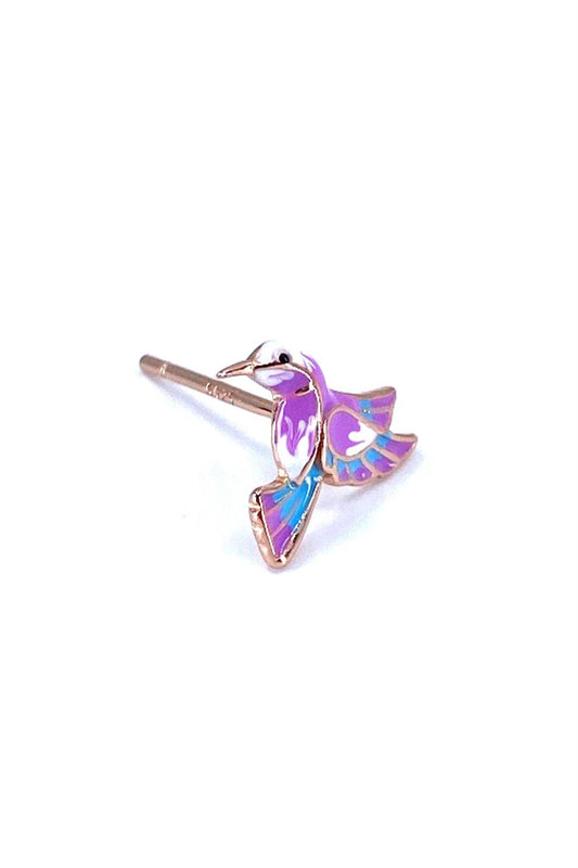 Lila Mineli Kuş Gümüş Çivili Küpe