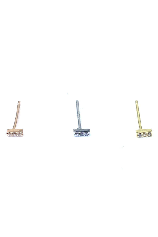 Beyaz Üç Taş Çubuk Çivili Küpe