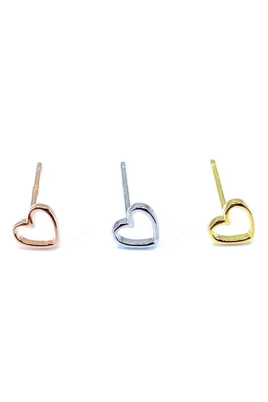 İçi Boş Kalp Mini Gümüş Çivili Küpe