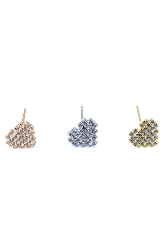 Tetris Kalp Mini Gümüş Çivili Küpe