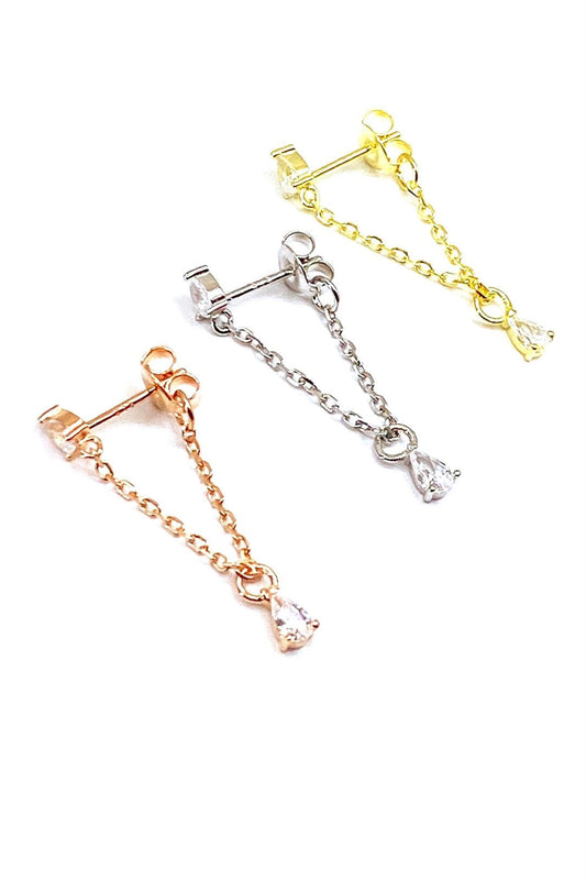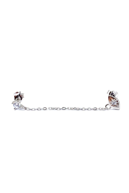 Beyaz İki Damla Gümüş Zincir Klips Küpe