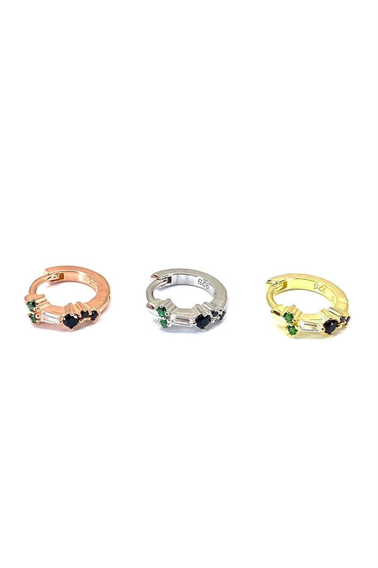 Siyah Ve Yeşil Mix Taşlı Ve Baget Gümüş Halka Küpe