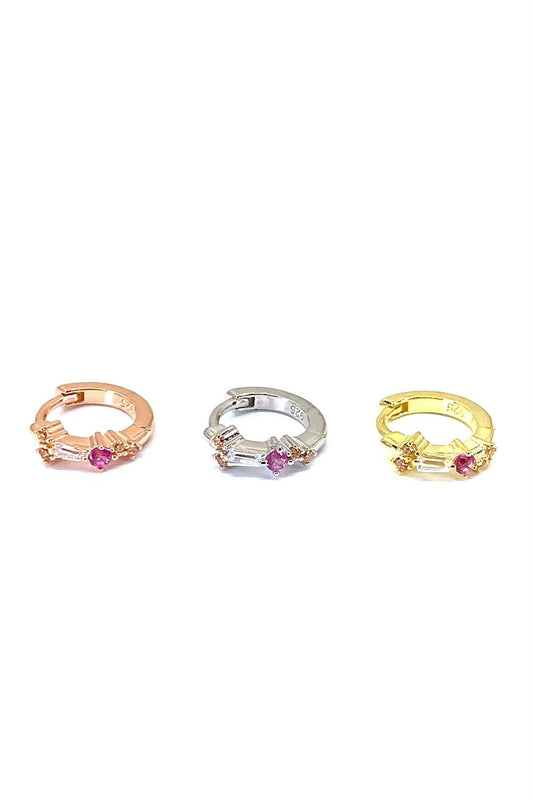 Sarı Ve Ruby Mix Taşlı Ve Baget Gümüş Halka Küpe