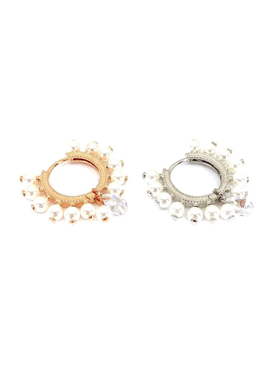 Ortası Damla Sallantılı İnci Tamtur Gümüş Halka Küpe