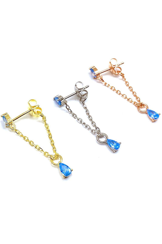 Turkuaz İki Damla Gümüş Zincir Klips Küpe