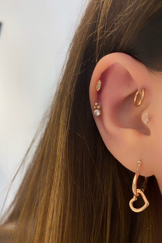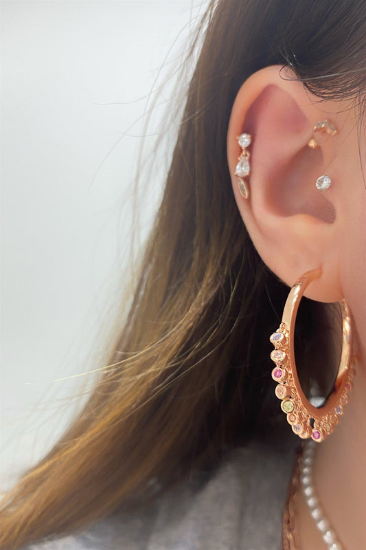 Üç Tohum Detay Taşlı Gümüş Halka Küpe