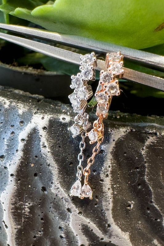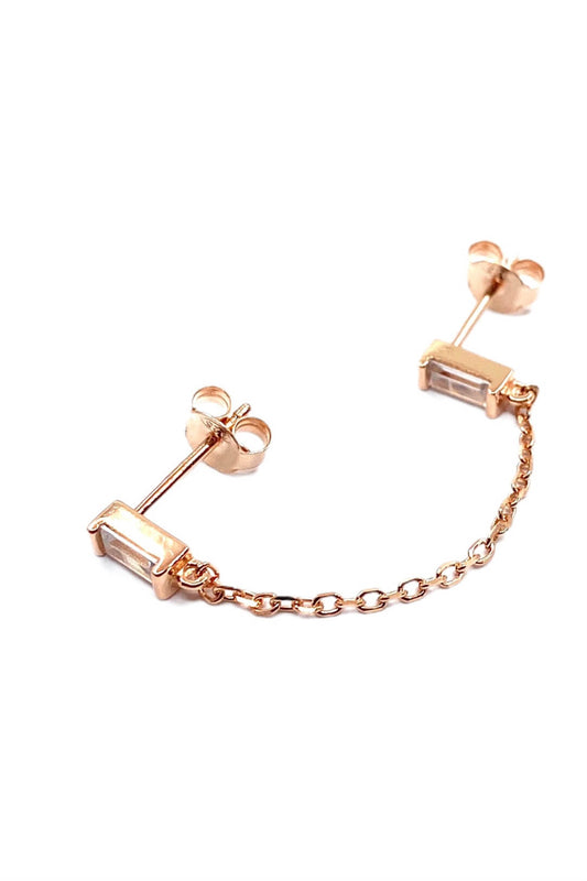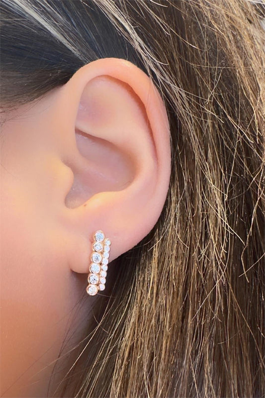 Uzun İki Sıra Taşlı Çubuk Gümüş Çivili Küpe