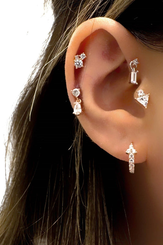 Tekli Beyaz Baget İkili Gümüş Çivili Küpe