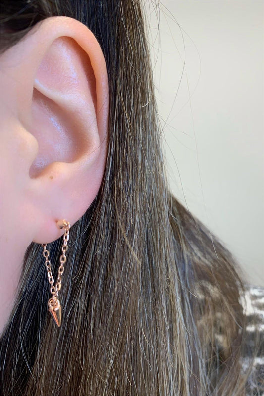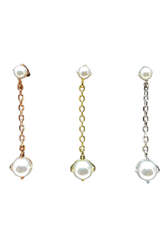 İki İnci Zincir Sallantılı Gümüş Çivili Küpe