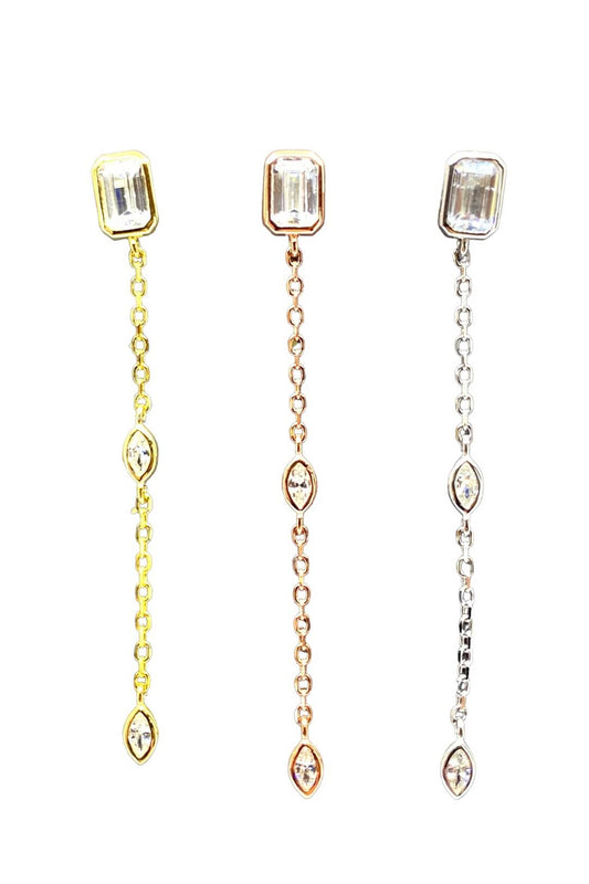 Baget Ve İki Markiz Gümüş Sallantılı Küpe