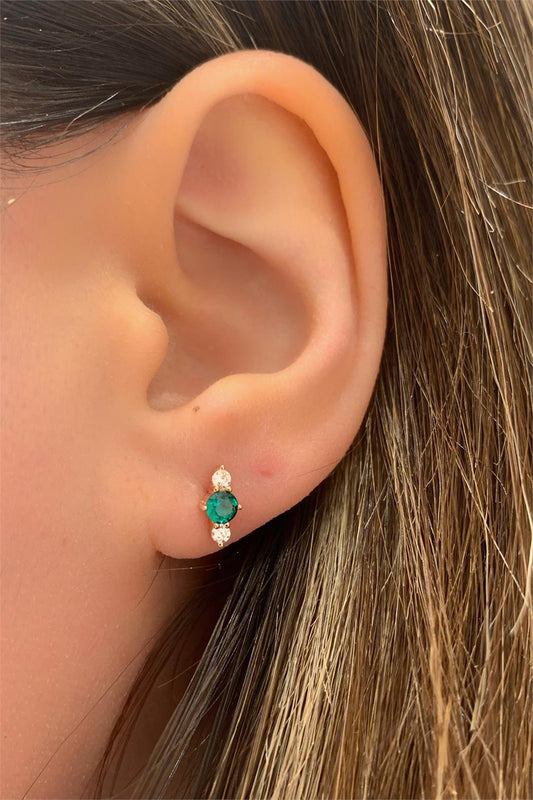 İki Beyaz Bir Yeşil Yuvarlak Gümüş Çivili Küpe