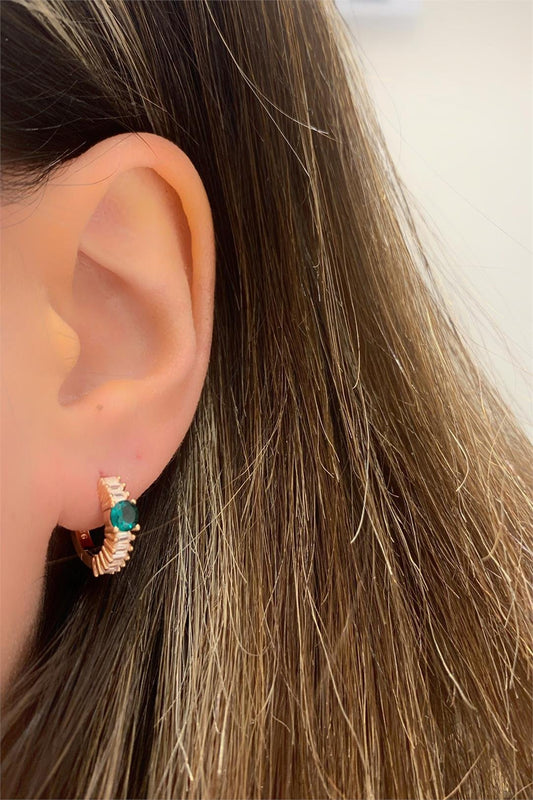 Yeşil Yuvarlak Beyaz Baget Midi Gümüş Halka Küpe