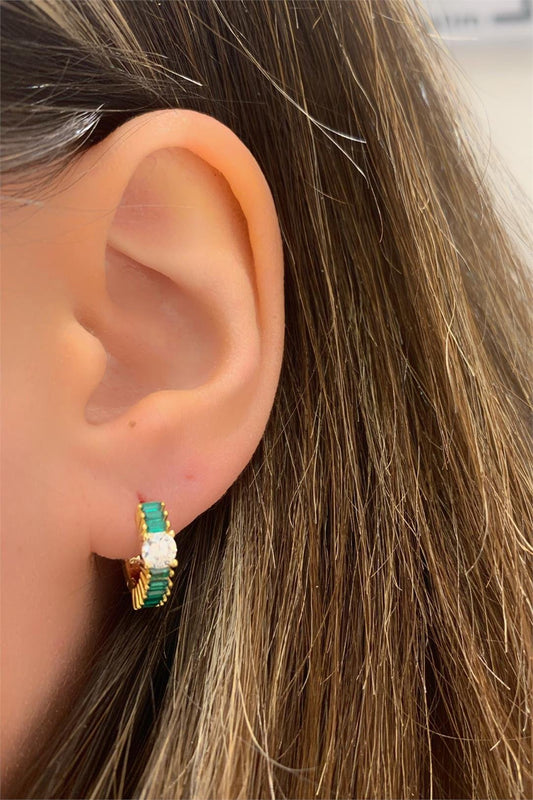 Beyaz Yuvarlak Yeşil Baget Midi Gümüş Halka Küpe