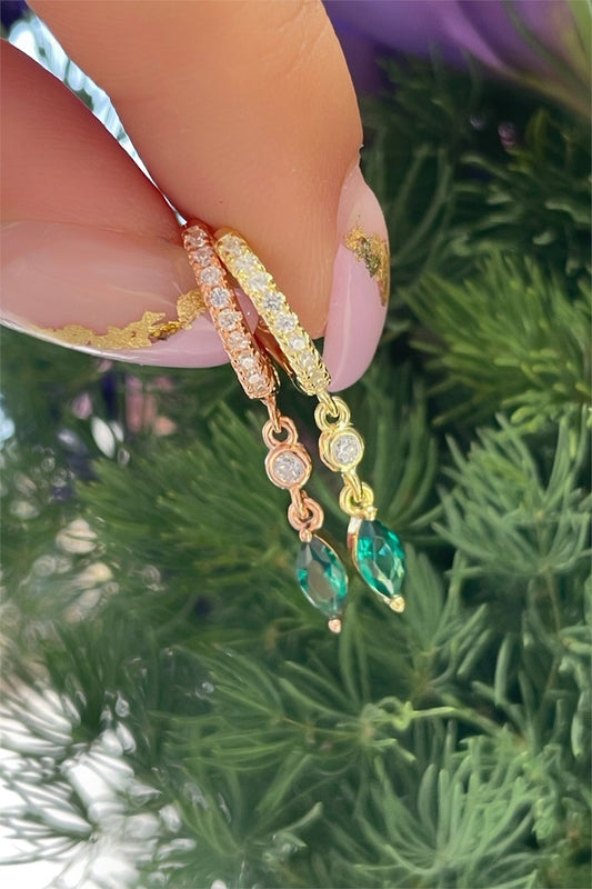 Tohum Yeşil Markiz Beyaz Taşlı Gümüş Halka Küpe