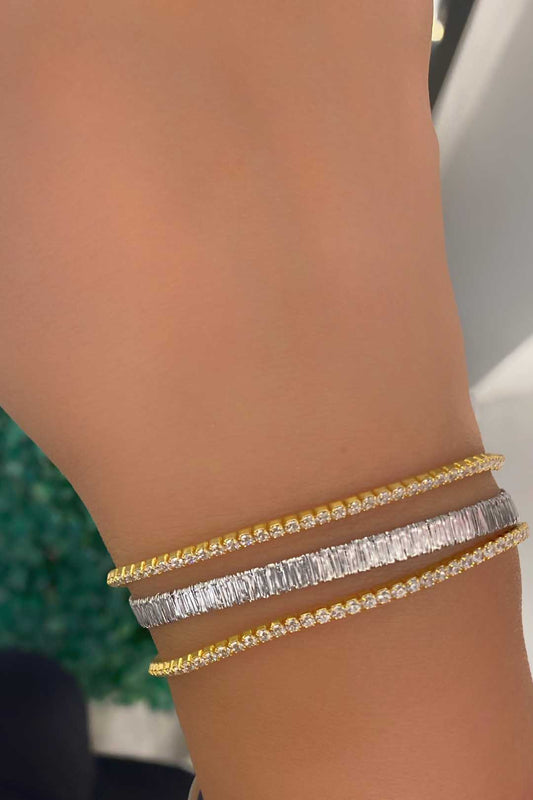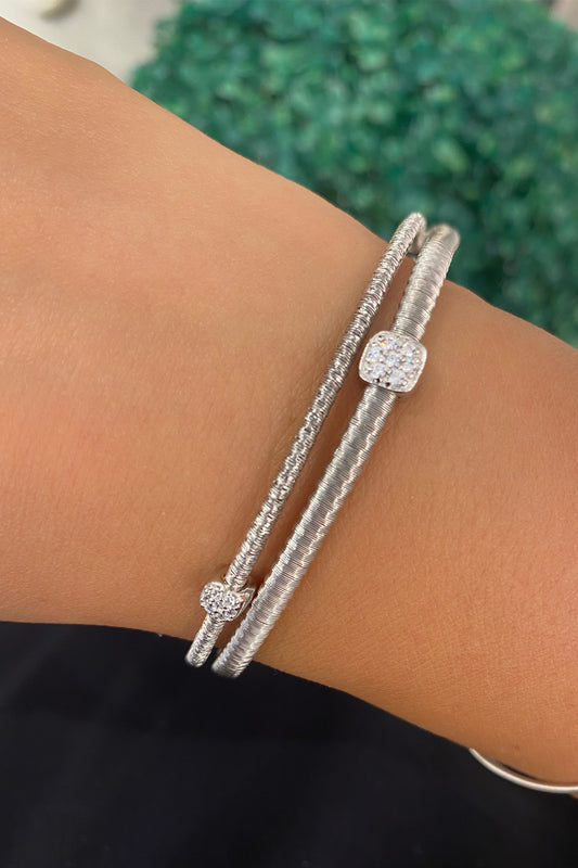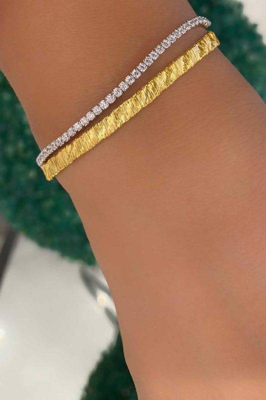 Broseli İnce ve Kalın Dolgulu İkili Gümüş Bileklik