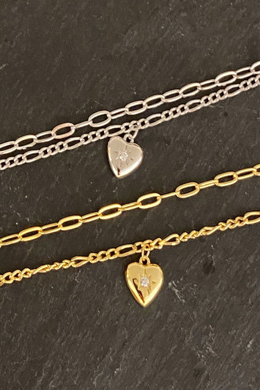 Oval ve Figaro Zincir İkili Bomby Kalp Gümüş Halhal