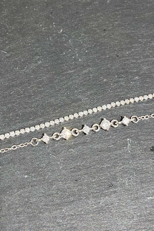 İnce Suyolu ve Beş Taş Detay İkili Gümüş Halhal