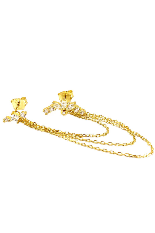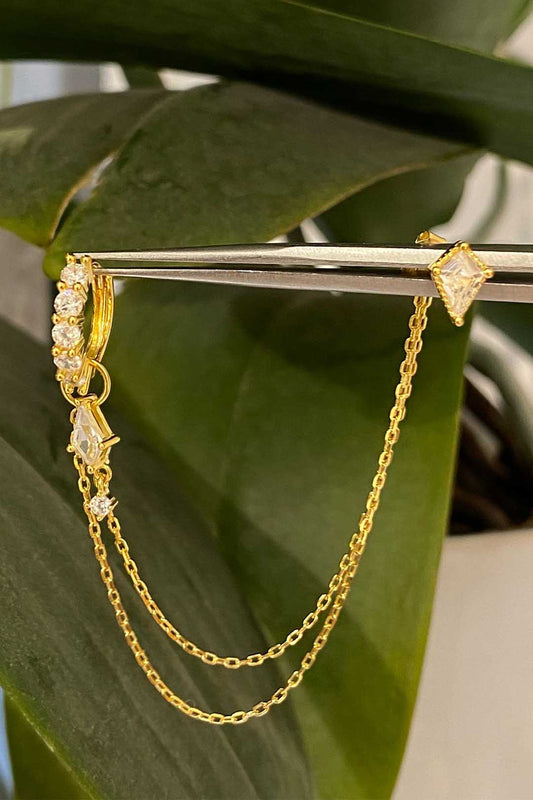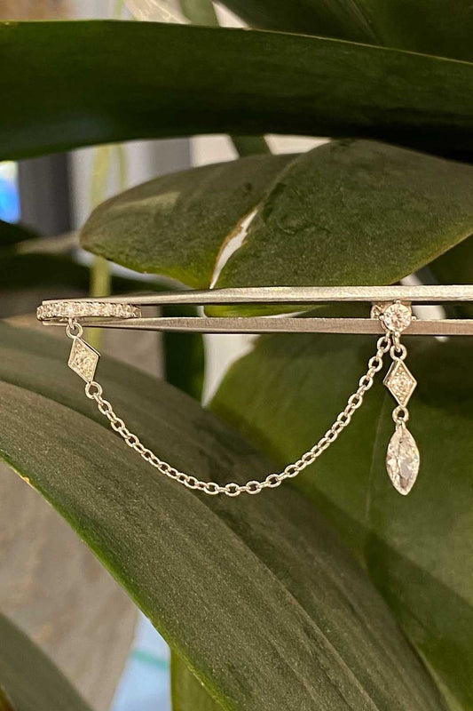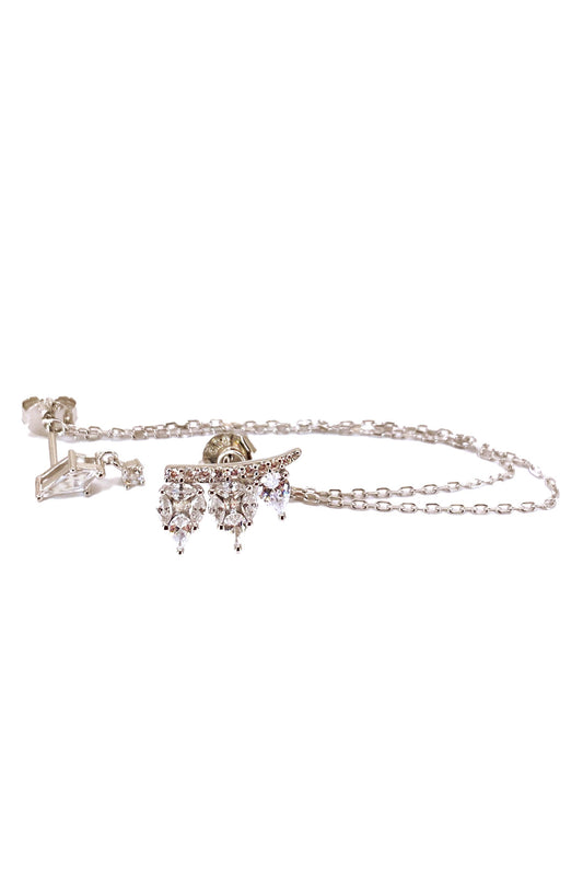 Kristal Ve Karo Sallantılı Gümüş Zincir Kıkırdak Küpe