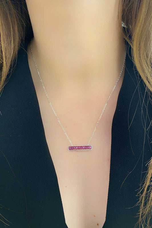 İçi Ruby Kristal Dikdörtgen Gümüş Kolye