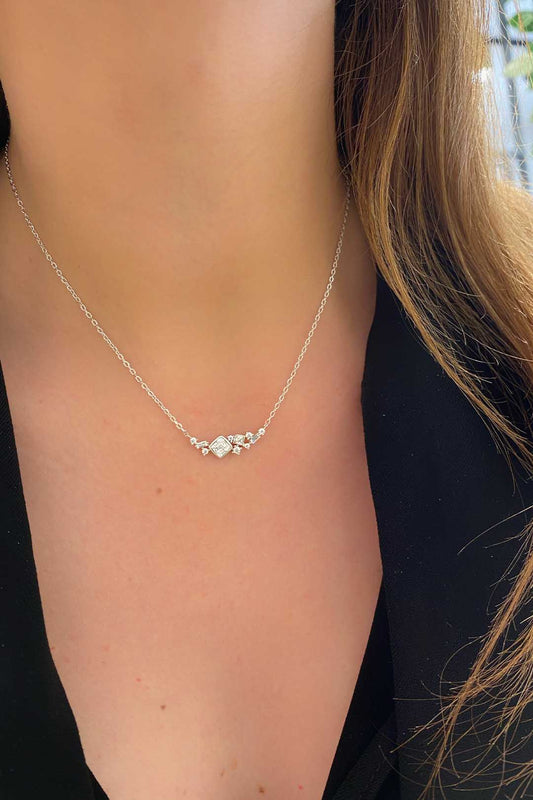 Kare Yuvarlak Ve Baget Detay Yatay Gümüş Kolye