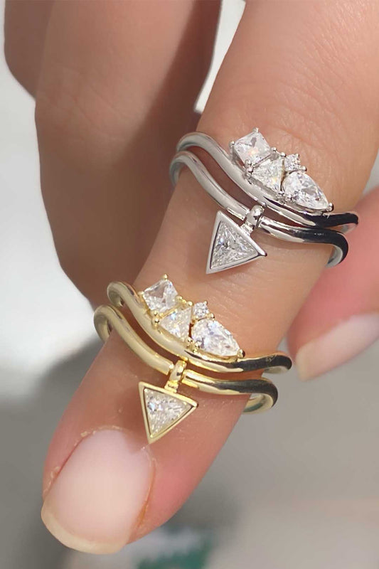 Damla Üçgen Kare İkili Gümüş Yüzük
