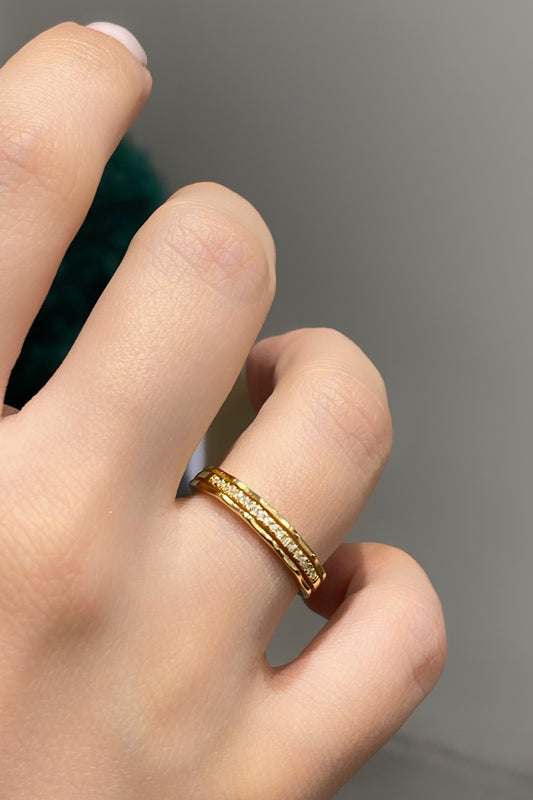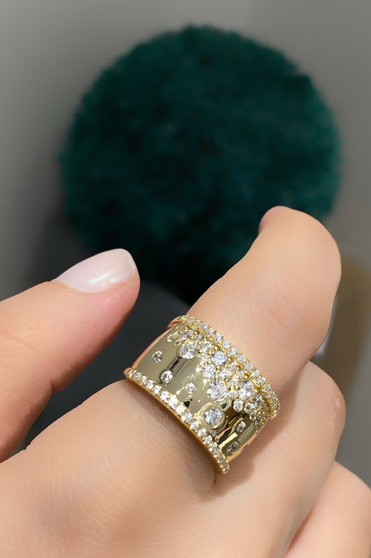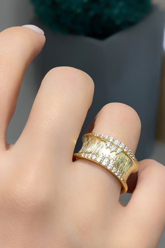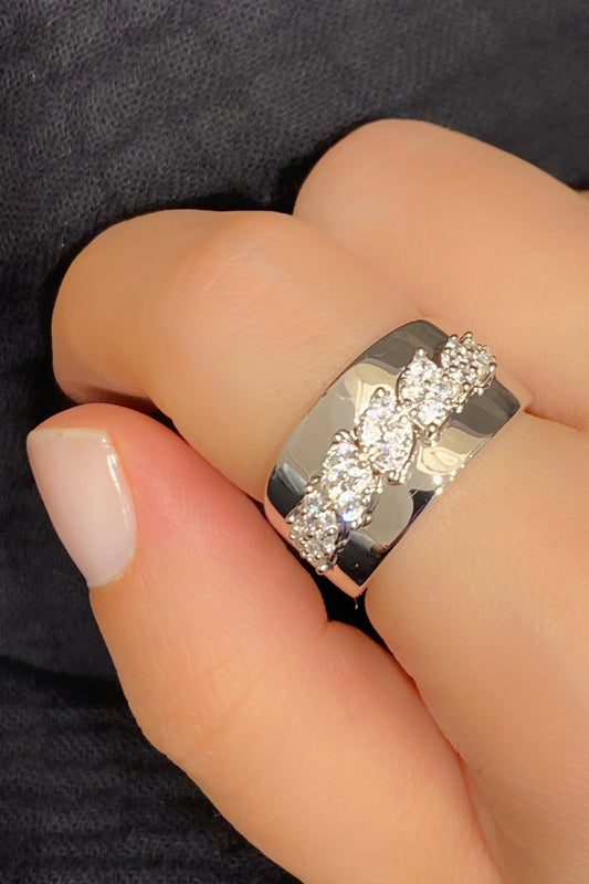 Dağınık Gömülü Taşlı Kalın Gümüş Yüzük