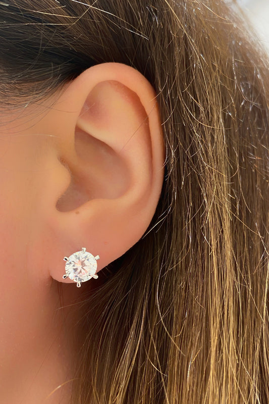 Altı Tırnaklı Tektaş Gümüş Çivili Küpe