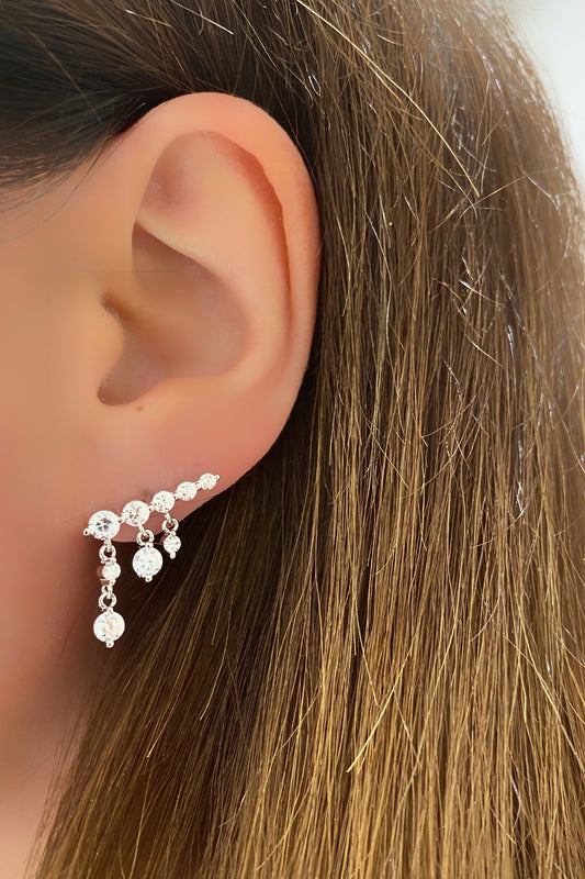Sallantılı Taş Detay Yatay Çubuk Gümüş Çivili Küpe