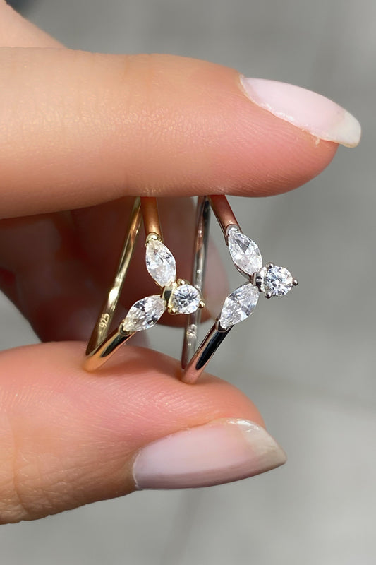 Yanları Beyaz İki Damla Ve Baget Gümüş Yüzük