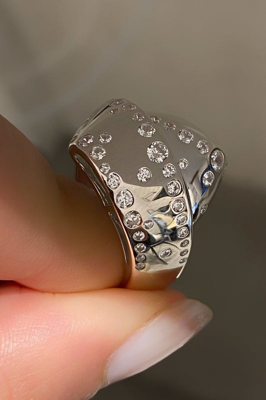 Dağınık Taşlı Çizgili Gümüş Yüzük