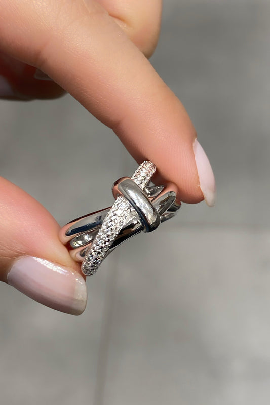 Ortadan Birleşik Taşlı Taşsız Üç Sıra Gümüş Yüzük
