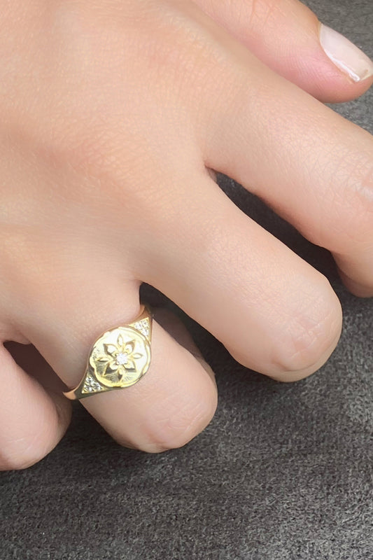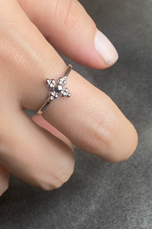 Minimal Yanları Taşlı Çiçek Desen Gümüş Yüzük