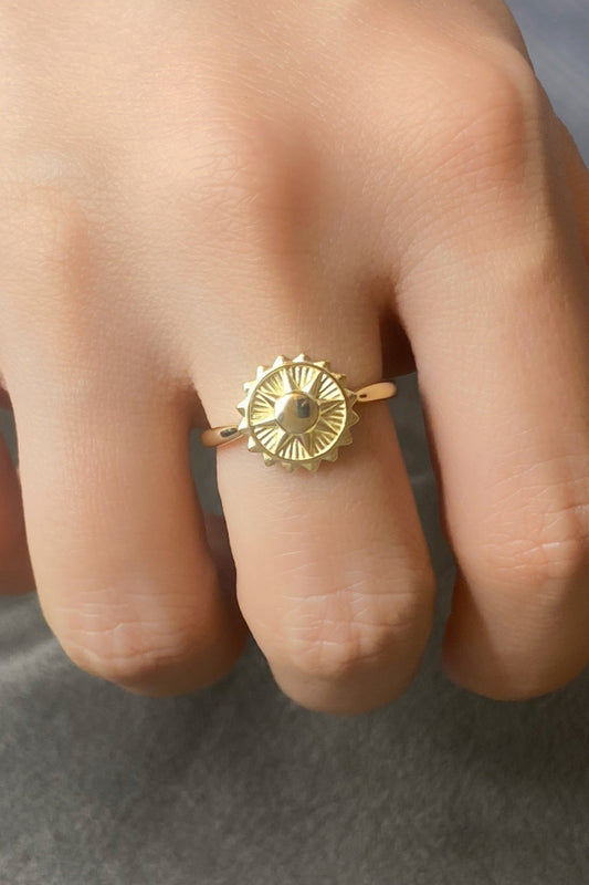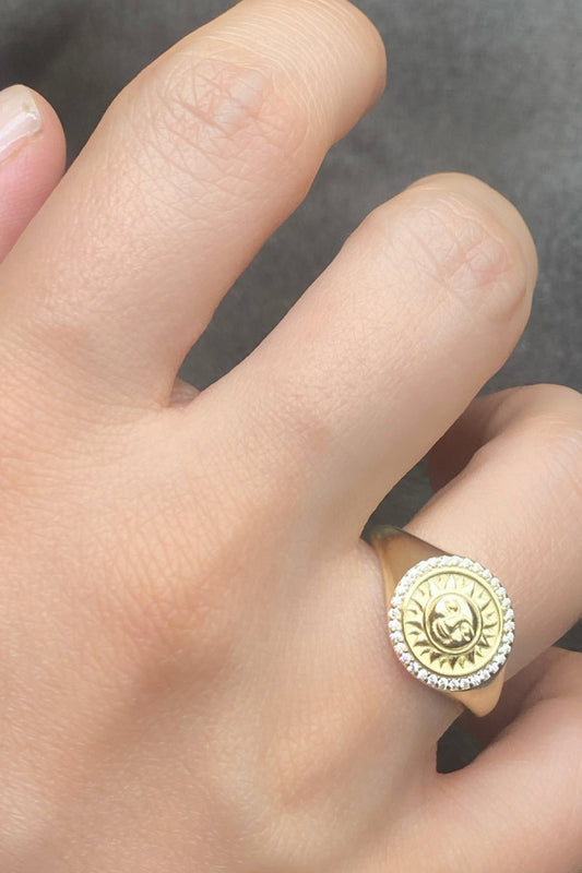 Minimal Güneş Ay Desen Gümüş Yüzük