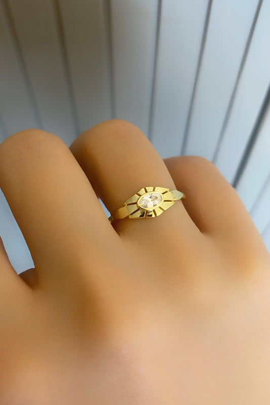 Minimal Oval Tektaş Göz Gümüş Yüzük