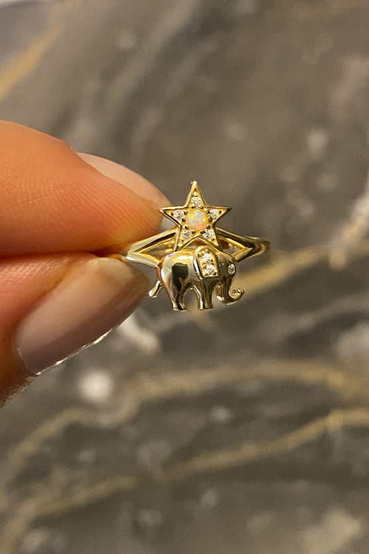Minimal Yıldız ve Fil Gümüş Yüzük
