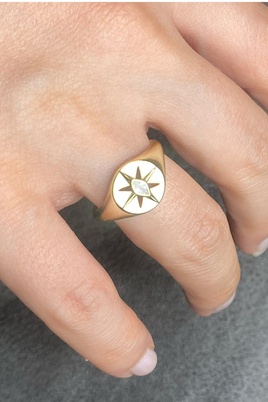 Minimal Mekik Taşlı Kuzeyyıldızı Gümüş Yüzük