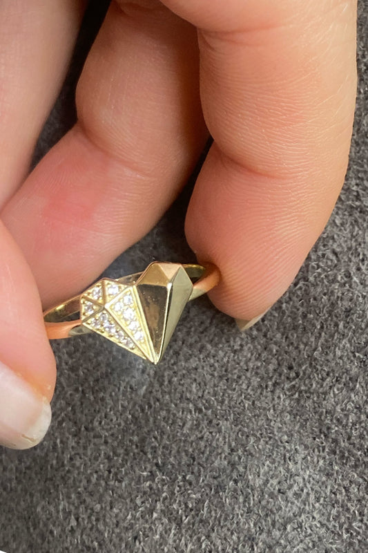 Minimal Taşlı Taşsız Köşeli Kalp Gümüş Yüzük