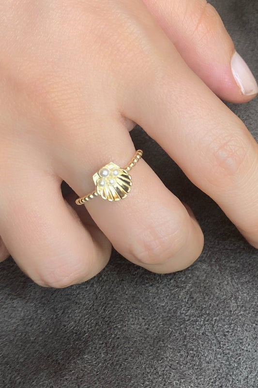 Minimal Üç İnci Denizkabuğu Gümüş Yüzük