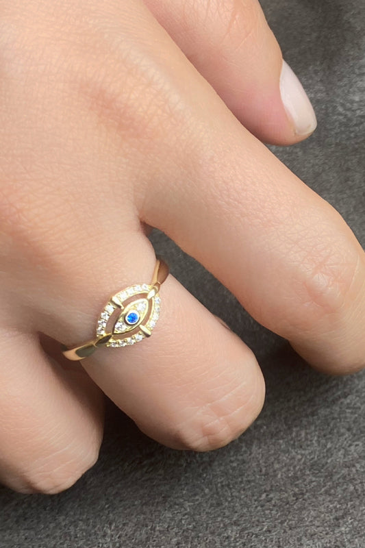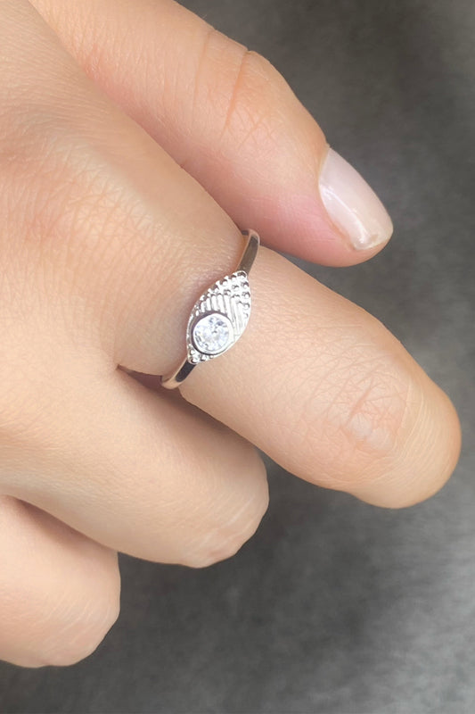Minimal Lacivert Tektaş Göz Çerçeve Gümüş Yüzük