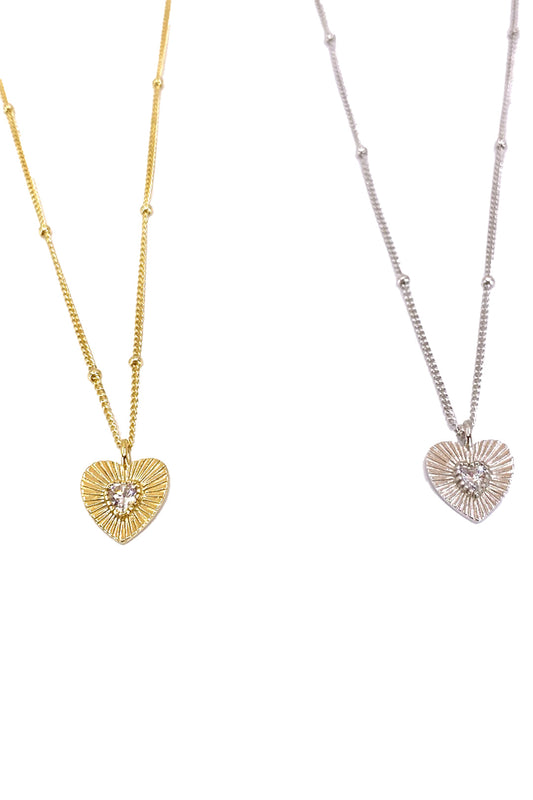 Gömülü ve Çizgili Kalp Gümüş Kolye