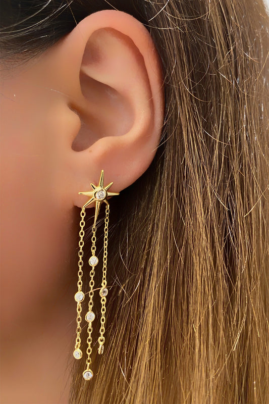 Üç Zincir Sallantılı Kutupyıldızı Gümüş Küpe