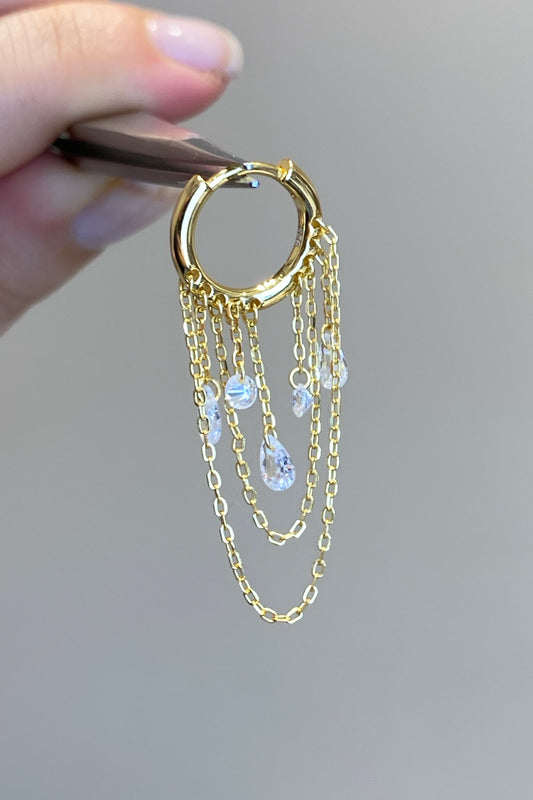 Kristal Beş Taş Sallantılı Boğum Gümüş Küpe