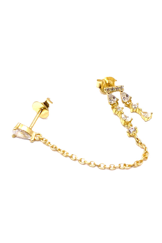 Minimal İki Damla Taşlı İkili Gümüş Küpe