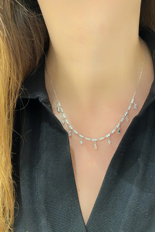 Baget ve Yuvarlak Taşlı Suyolu Gümüş Kolye