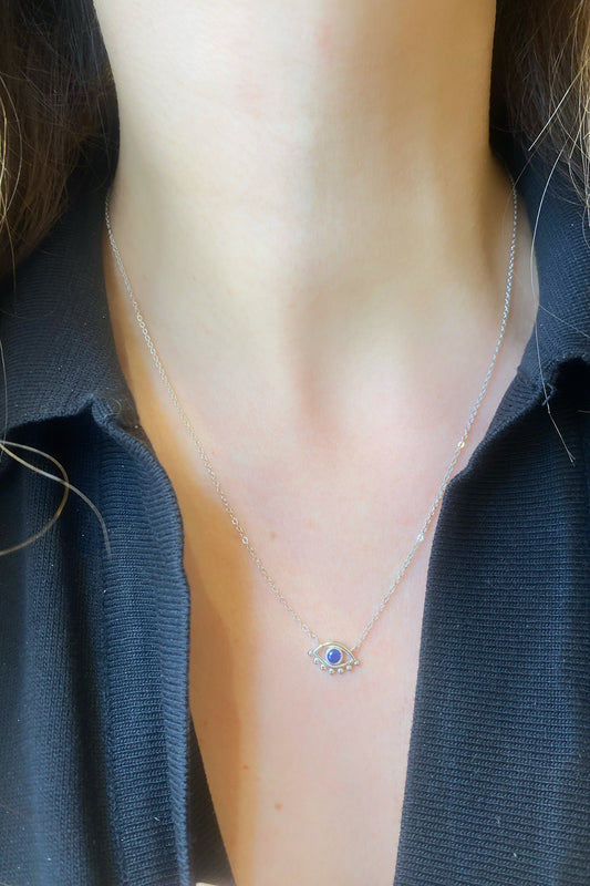 Lacivert ve Top Detay Göz Gümüş Kolye