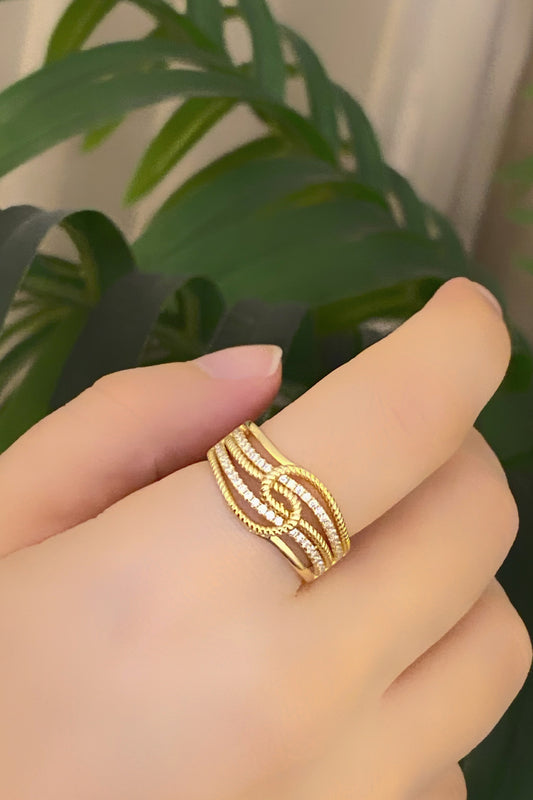 Taşlı X Detay İki Sıra Gümüş Yüzük