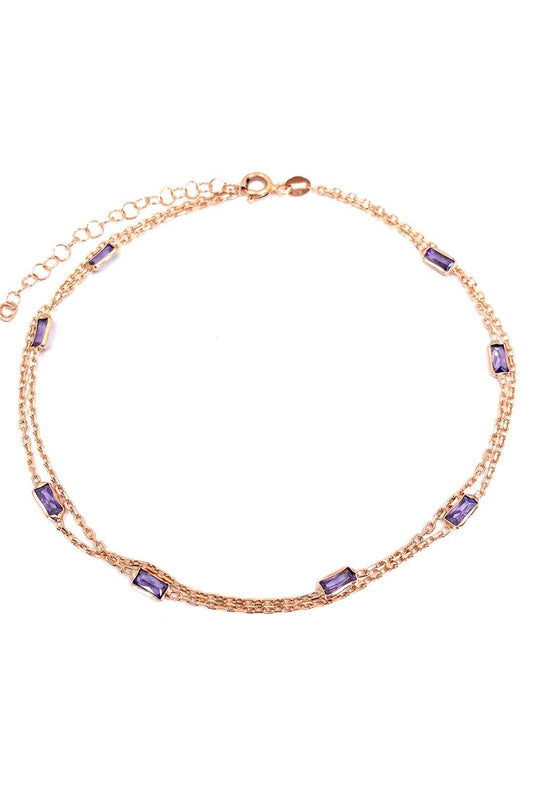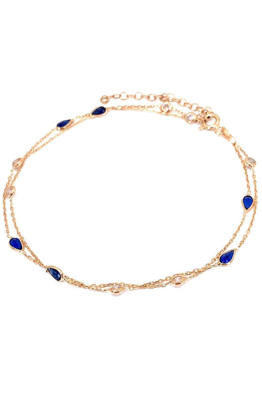 Lacivert Damla Ve Tohum İki Sıra Gümüş Halhal