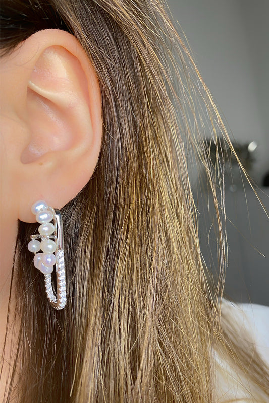 İnci Ve Taşlı Askı C Gümüş Küpe