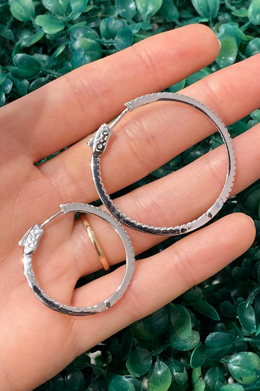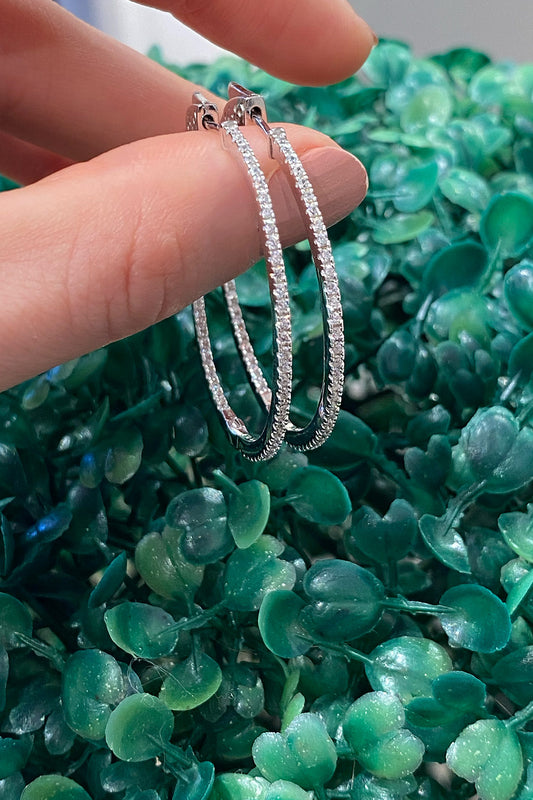Maxi Kare Görünümlü İnce Taşlı Gümüş Halka Küpe