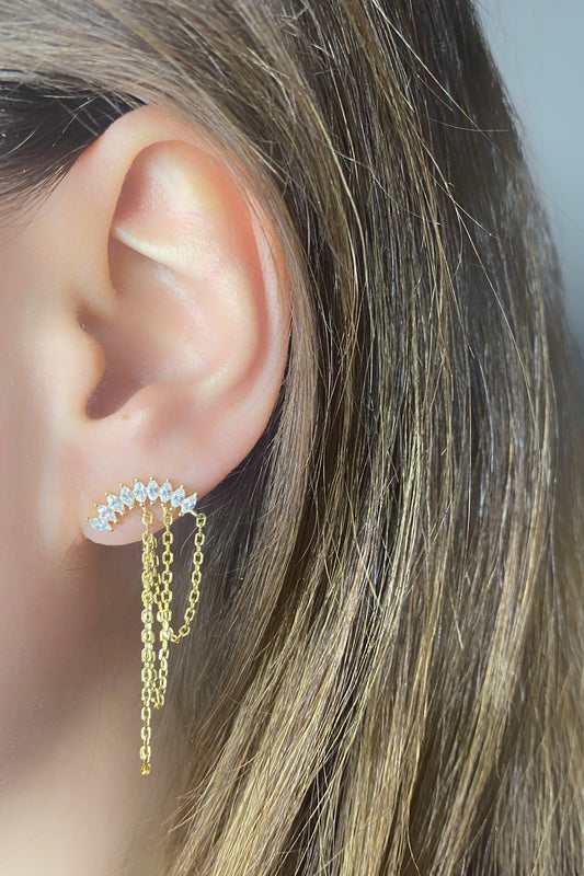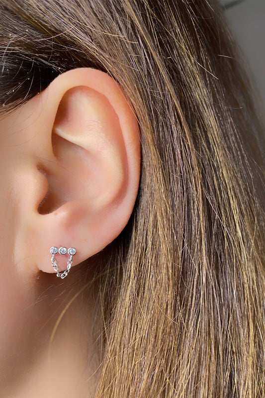 Markiz Yay Üçlü Boğum Gümüş Zincir Klips Küpe